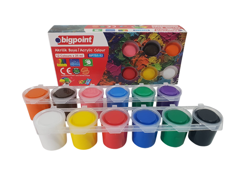 Bigpoint Akrilik Boya 12 Li 25 Ml. Sıralı Şişe Set