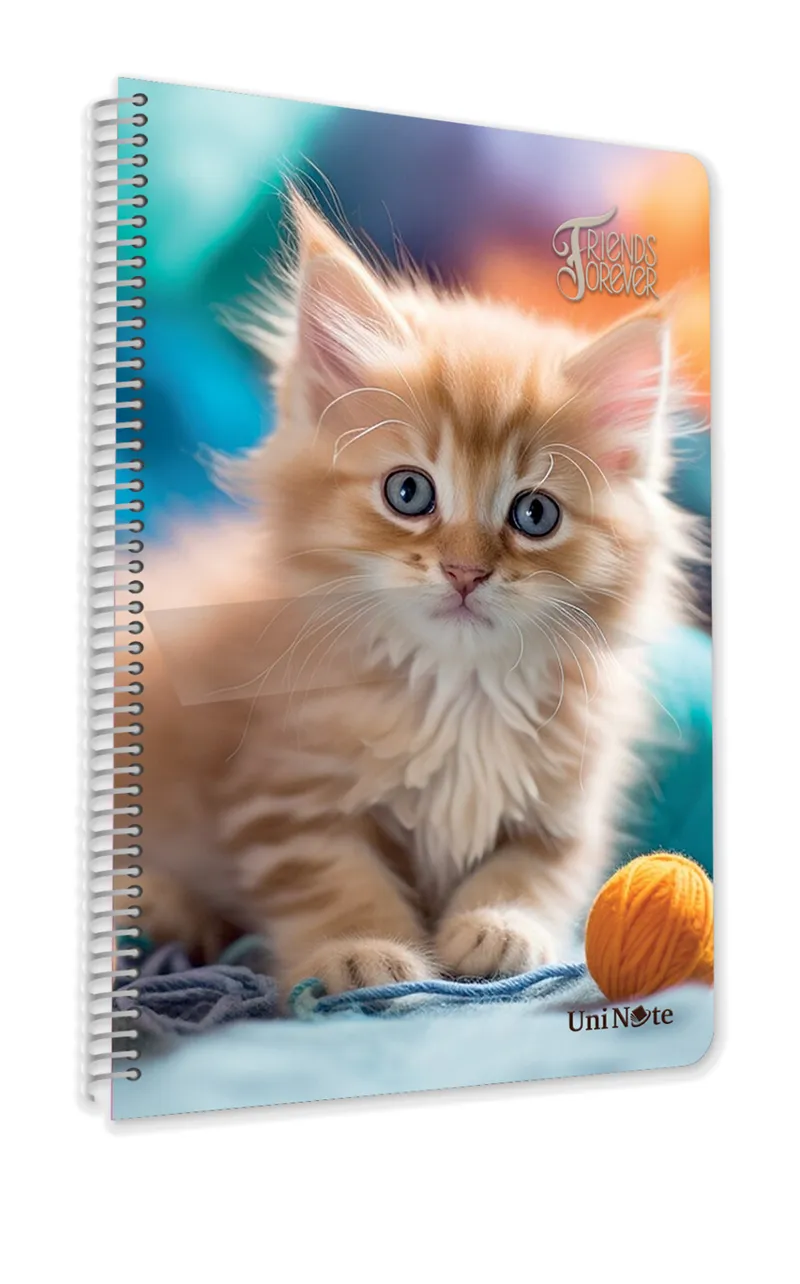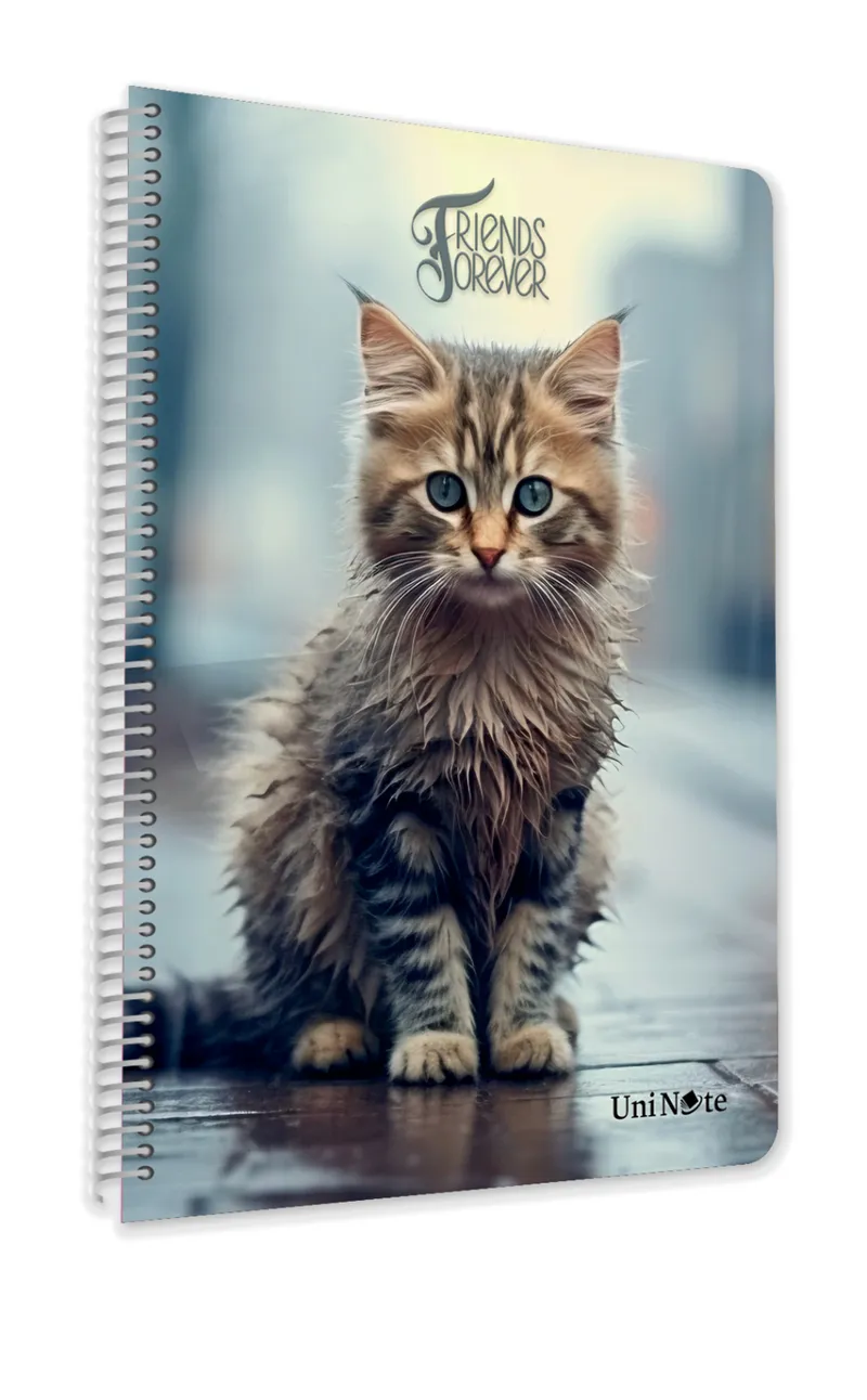 Çınar Sevimli Kediler Spiralli Plastik Kapak 72 Yaprak. Çizgili