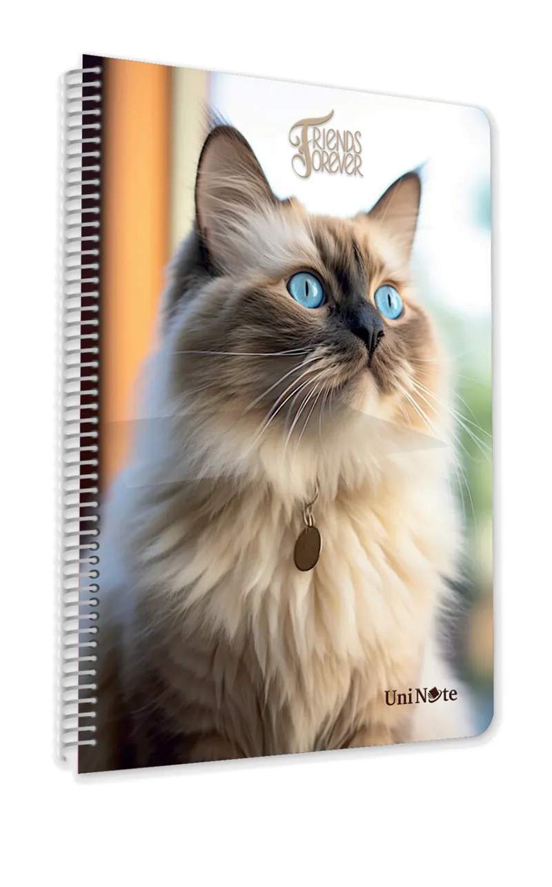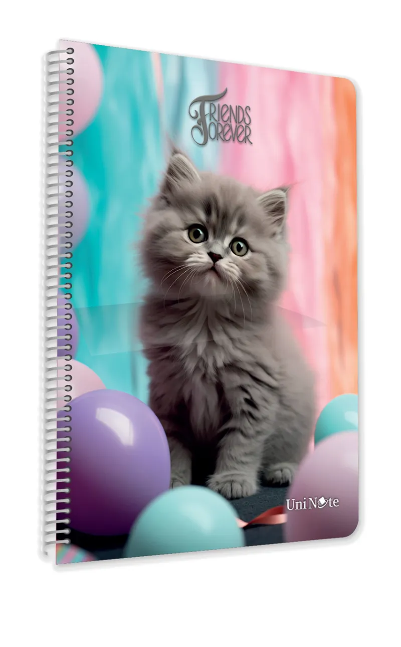 Çınar Sevimli Kediler Spiralli Plastik Kapak 96 Yaprak. Çizgili