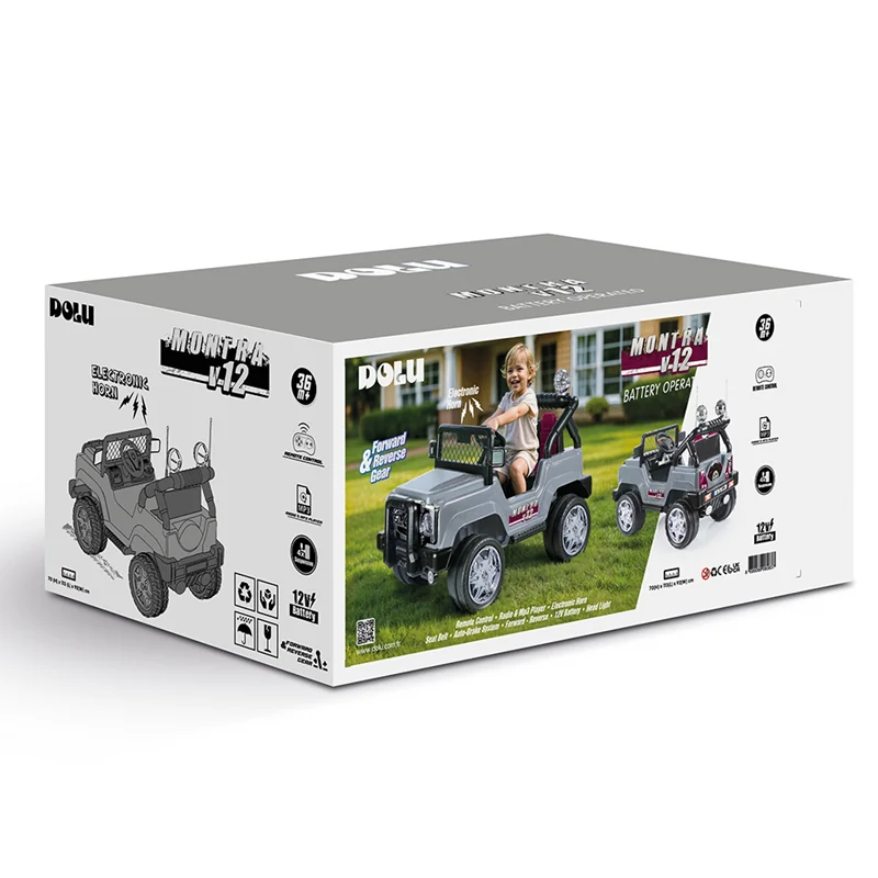 Dolu Oyuncak 12v Akülü Montra Jeep Gri Araba Uzaktan Kumanda&korna&emniyet Kem& Radıo-mp3 & Abs& İleri-geri