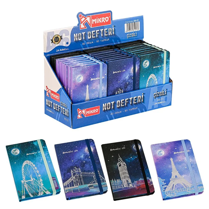 Mıkro A Defteri Lastikli Çizgili 80 Yaprak Karma Desen