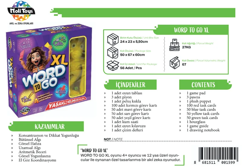 “WORD TO GO XL” WORD TO GO XL oyunu 12 yaş üzeri oyuncular ile oynanan özel tasarlanmış bir akıl zeka oyunudur. KAZANIMLAR