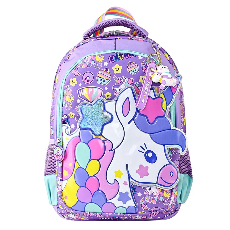 Muggle Mu-5802 Purple İlkokul Sırt Çantası Maskot Anahtarlık Hediyeli