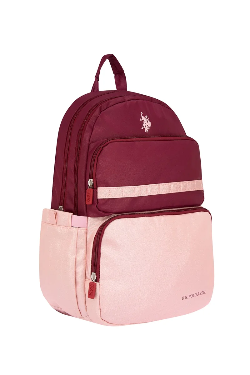 U.s Polo Sırt & Okul Çantası Dört Gözlü Bordo & Pembe Simli